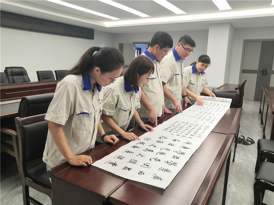 各企業(yè)對獲獎(jiǎng)楹聯(lián)作品進(jìn)行了書寫張貼,充分結(jié)合第二段黨史學(xué)習(xí)教育的推動開展,多種形式掀起活動高潮。公司紀(jì)委以楹聯(lián)獲獎(jiǎng)作品為開篇主題,制作印發(fā)了“漫說紀(jì)廉”第二期海報(bào);柳州鹽業(yè)公司開展書法培訓(xùn)活動,從漢字的來源、演變和書法筆法運(yùn)用技巧等入手,開展楹聯(lián)獲獎(jiǎng)作品的賞析與書寫;梧州鹽業(yè)分公司黨支部開展了“楹聯(lián)倡廉潔,永遠(yuǎn)跟黨走”主題黨日活動,進(jìn)行獲獎(jiǎng)楹聯(lián)作品中黨史故事“大家講”,感悟中國共產(chǎn)黨的豐功偉績、鹽業(yè)事業(yè)的潔白干凈、做人做事須如鹽般純凈、廉潔自律的重要性;欽州鹽業(yè)分公司黨支部組織開展“楹聯(lián)學(xué)黨史、筆墨頌黨恩”主題黨日活動,通過書寫獲獎(jiǎng)楹聯(lián)作品和紅色詩詞走心走新的形式,不斷推動黨史學(xué)習(xí)教育走深走實(shí);貴港鹽業(yè)分公司以楹聯(lián)集中書寫為契機(jī),結(jié)合進(jìn)行觀看線上展覽《黨史中的紀(jì)律---中國共產(chǎn)黨反腐倡廉歷程展》,樹牢廉潔意識,積蓄?yuàn)^進(jìn)力量;賀州鹽業(yè)分公司以持續(xù)深入學(xué)習(xí)貫徹習(xí)近平總書記“七一”重要講話精神和視察廣西時(shí)重要講話和指示精神為契機(jī),結(jié)合楹聯(lián)作品中的黨史,開展新穎的黨史學(xué)習(xí)教育,讓大家在欣賞中國文化國粹的同時(shí),還在文字寓意當(dāng)中領(lǐng)悟到國有企業(yè)的使命與擔(dān)當(dāng);崇左鹽業(yè)分公司開展“學(xué)黨史、寫楹聯(lián),水墨丹青展風(fēng)采”活動,領(lǐng)導(dǎo)干部帶頭講革命先輩的書法作品與黨史故事。一副副楹聯(lián)作品工整張貼各企業(yè)辦公區(qū)大門及顯要位置,凝聚了同志們對鹽業(yè)的質(zhì)樸深情,展示了干部職工情系企業(yè)對未來的美好愿景,體現(xiàn)了廣西鹽業(yè)“賡續(xù)精神,永葆本色”的奮斗意志和政治擔(dān)當(dāng)。活動通過將楹聯(lián)創(chuàng)作宣傳、沉浸體會精神和黨史學(xué)習(xí)教育相結(jié)合,加深了大家對黨的理想信念宗旨、優(yōu)良傳統(tǒng)作風(fēng)和中華優(yōu)秀傳統(tǒng)文化、紅色家風(fēng)的深刻感悟,引起了廣大干部職工對“黨史學(xué)習(xí)潤初心,家風(fēng)楹聯(lián)促廉潔”的思考和共鳴,讓大家從黨的奮斗歷史中汲取前進(jìn)力量,切實(shí)做到解放思想凝心聚力擔(dān)當(dāng)實(shí)干。