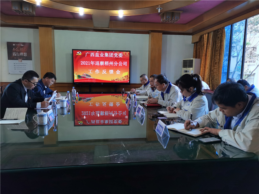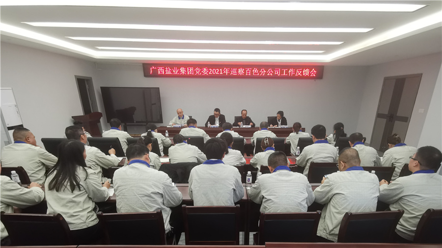 集團(tuán)黨委巡察組成員,百色分公司、玉林鹽業(yè)公司和梧州分公司領(lǐng)導(dǎo)班子成員、中層管理人員及全體在職職工參會。