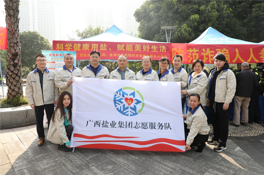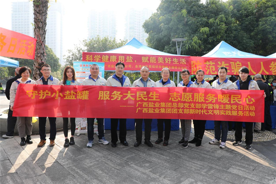 在第59個(gè)“學(xué)雷鋒紀(jì)念日”來(lái)臨之際,為弘揚(yáng)“雷鋒精神”,2022年3月3日,為了進(jìn)一步推動(dòng)“學(xué)黨史 轉(zhuǎn)作風(fēng) 提效能 樹(shù)形象 創(chuàng)一流”提升自身建設(shè)專(zhuān)項(xiàng)行動(dòng)取得實(shí)效,中鹽廣西有限公司黨支部、廣西鹽業(yè)集團(tuán)總部黨支部聯(lián)合金浦社區(qū)黨委,在金浦社區(qū)都市假期廣場(chǎng)開(kāi)展“守護(hù)小鹽罐 服務(wù)大民生”學(xué)雷鋒志愿服務(wù)活動(dòng),活動(dòng)以“弘揚(yáng)雷鋒精神,科學(xué)合理食鹽,追求健康生活”為主題,向社區(qū)群眾科普碘缺乏病知識(shí),講解如何分辨真假食鹽,宣傳減鹽低鈉食鹽理念,將弘揚(yáng)和傳承雷鋒精神與“我為群眾辦實(shí)事”結(jié)合起來(lái),進(jìn)一步鞏固深化黨史學(xué)習(xí)教育成效。