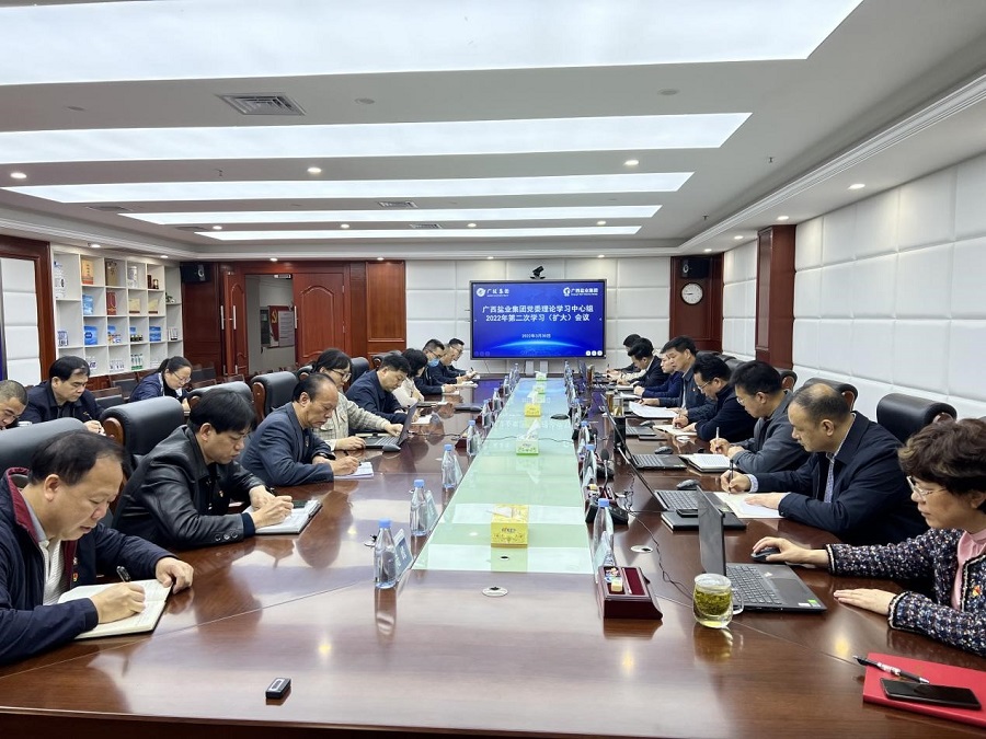 2022年3月30日上午,廣西鹽業(yè)集團(tuán)黨委召開理論學(xué)習(xí)中心組2022年第二次學(xué)習(xí)(擴(kuò)大)會議,專題學(xué)習(xí)全國兩會精神。廣西鹽業(yè)集團(tuán)黨委書記、董事長李奕添主持會議并作重點(diǎn)發(fā)言,其他領(lǐng)導(dǎo)班子成員作研討發(fā)言。