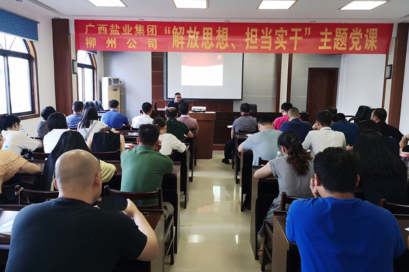 2019年6月19日,根據(jù)集團(tuán)公司黨組“不忘初心、牢記使命”主題教育工作安排,集團(tuán)公司黨組成員、董事、紀(jì)檢組長區(qū)曉文到柳州鹽業(yè)有限公司給全體職工上了一堂“解放思想、擔(dān)當(dāng)實(shí)干”主題黨課。