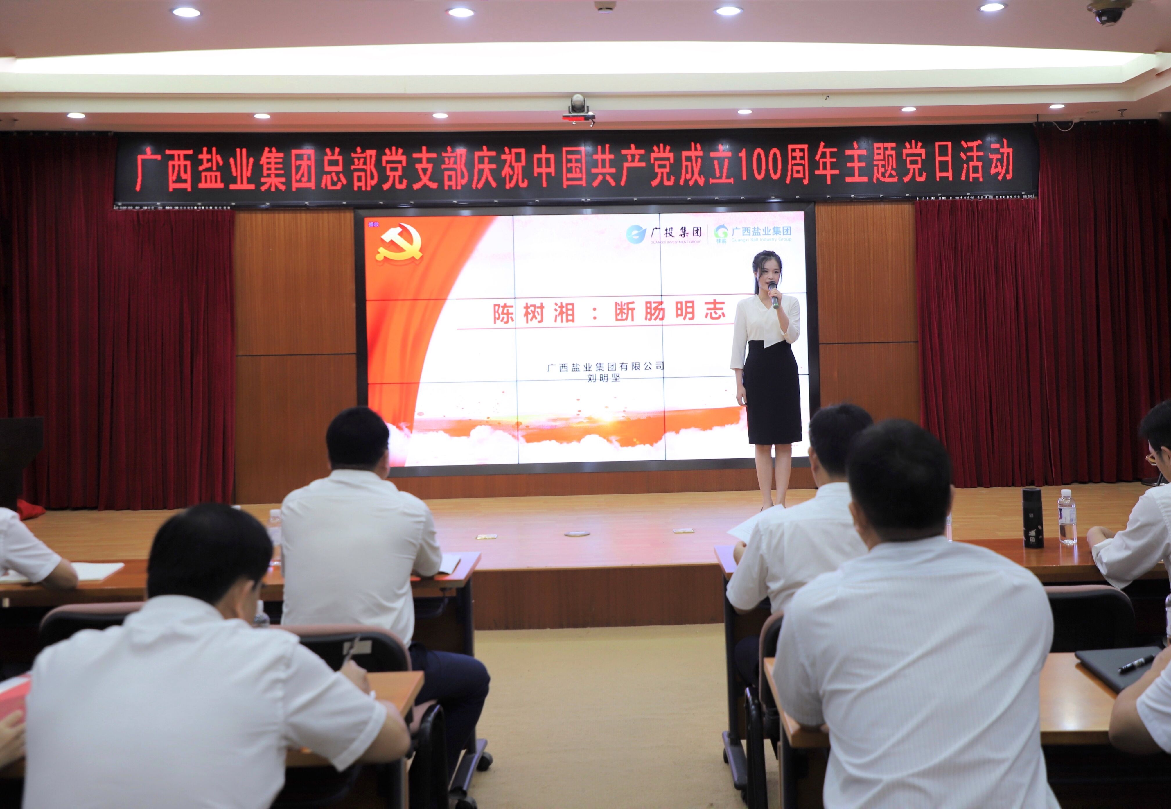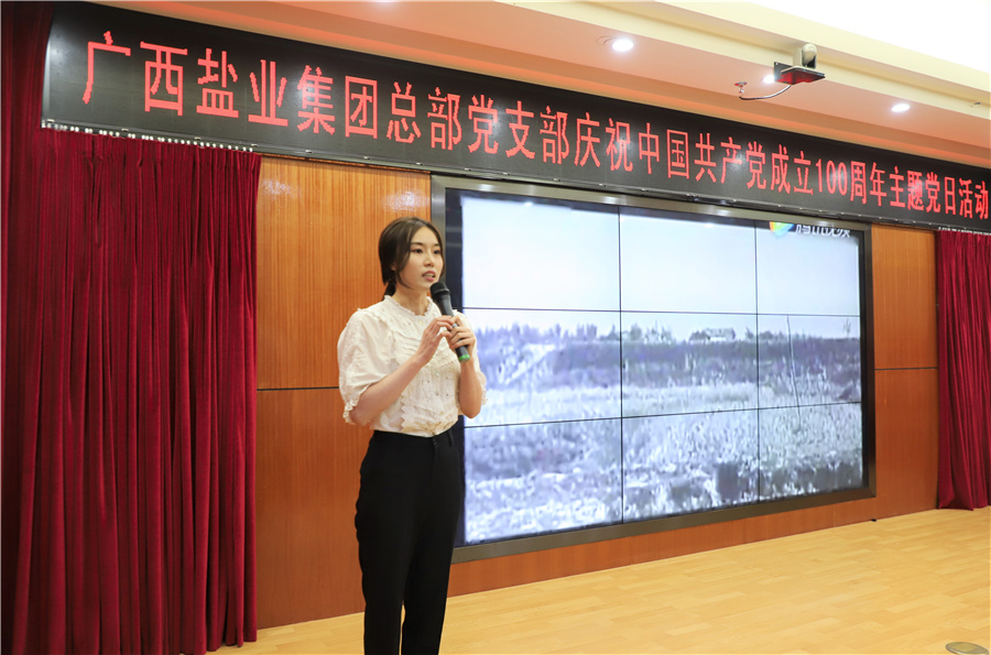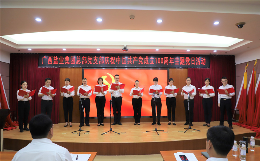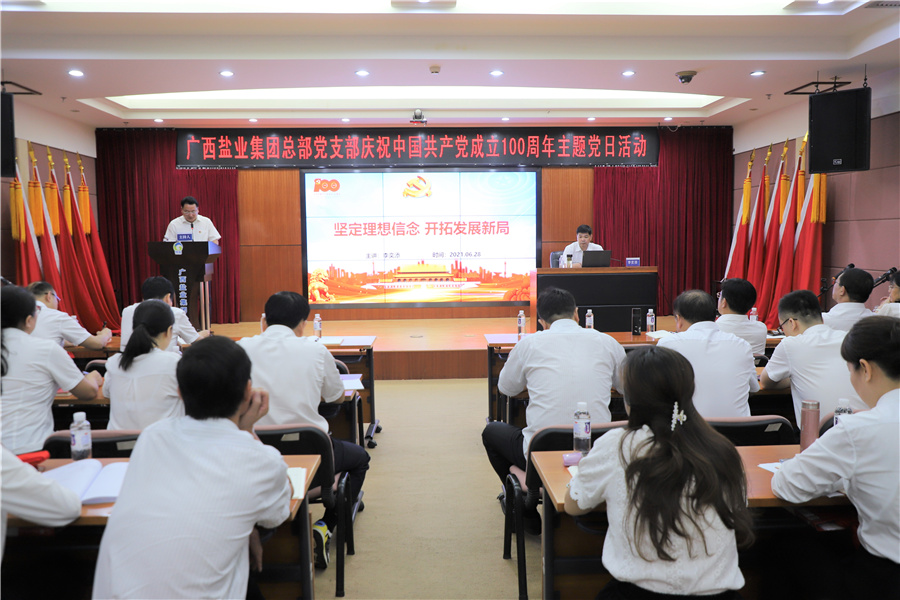 為慶祝中國(guó)共產(chǎn)黨成立100周年,落實(shí)黨史學(xué)習(xí)教育工作要求,廣西鹽業(yè)集團(tuán)有限公司總部黨支部于2021年6月28日上午開(kāi)展了慶祝中國(guó)共產(chǎn)黨成立100周年主題黨日活動(dòng),通過(guò)黨委書(shū)記上黨課、宣講紅色故事、朗誦紅色詩(shī)歌、重溫入黨誓詞、觀看安全生產(chǎn)教育片《生命重于泰山》等形式,讓主題黨日活動(dòng)走“深”又走“心”,出“新”又出“彩”,既增強(qiáng)了黨員的學(xué)習(xí)氛圍,又增強(qiáng)了黨員開(kāi)創(chuàng)事業(yè)、爭(zhēng)優(yōu)創(chuàng)先的熱情,推動(dòng)黨員干部進(jìn)一步守好初心,擔(dān)好使命,堅(jiān)持不懈為廣西鹽業(yè)高質(zhì)量發(fā)展而奮斗,堅(jiān)持不懈為“十四五”開(kāi)好局起好步、全面建設(shè)社會(huì)主義現(xiàn)代化國(guó)家貢獻(xiàn)桂鹽力量。