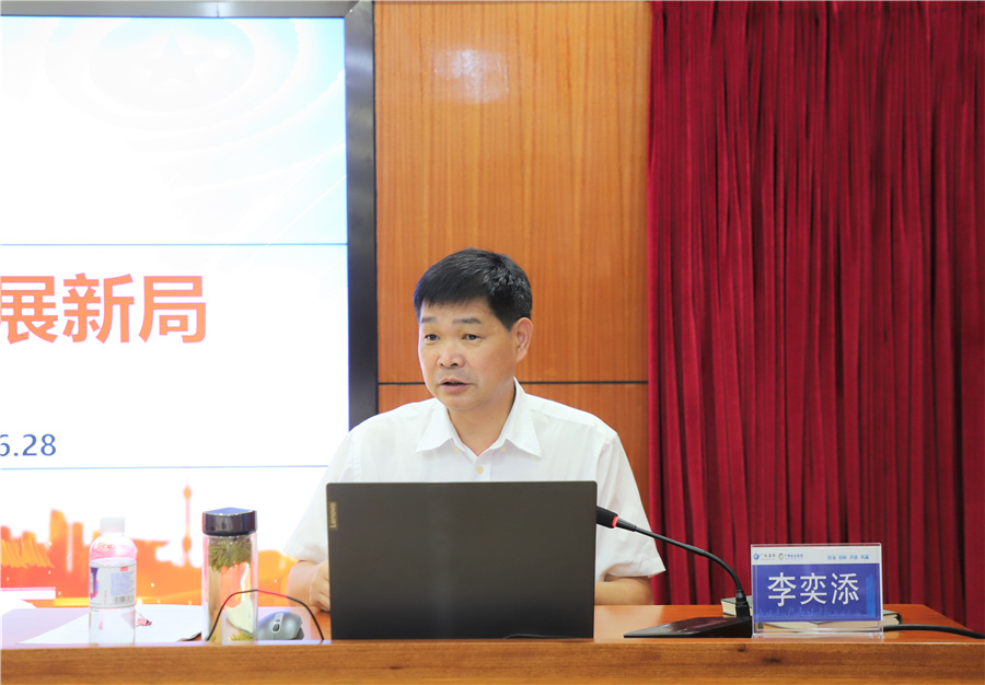 圖為集團(tuán)黨委書(shū)記、董事長(zhǎng)李奕添上專(zhuān)題黨課