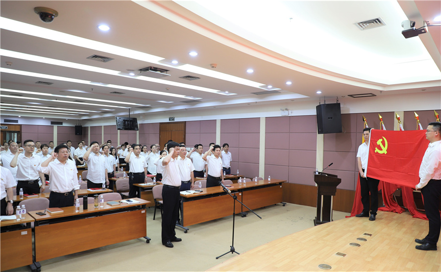 圖為全體黨員重溫入黨誓詞