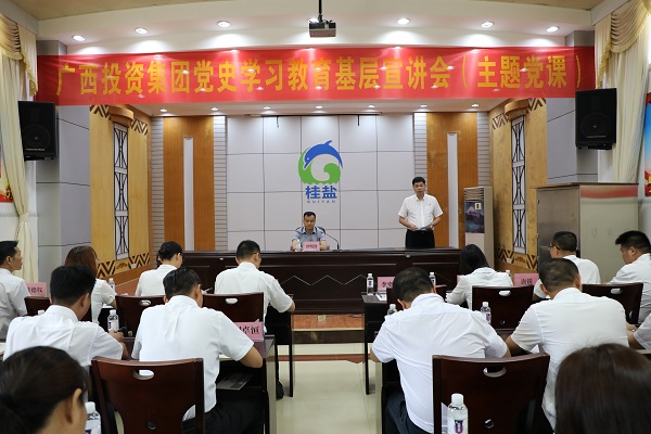 隨后,劉明洪一行來到廣西鹽業(yè)集團北海分公司進行廣西投資集團黨史學習教育專題宣講,宣講會由廣西鹽業(yè)集團黨委書記、董事長李奕添主持,廣投集團代表、鹽業(yè)集團代表以及鹽業(yè)集團北海分公司、欽州分公司、中鹽銀暉公司等單位全體員工共40余人聆聽宣講會。