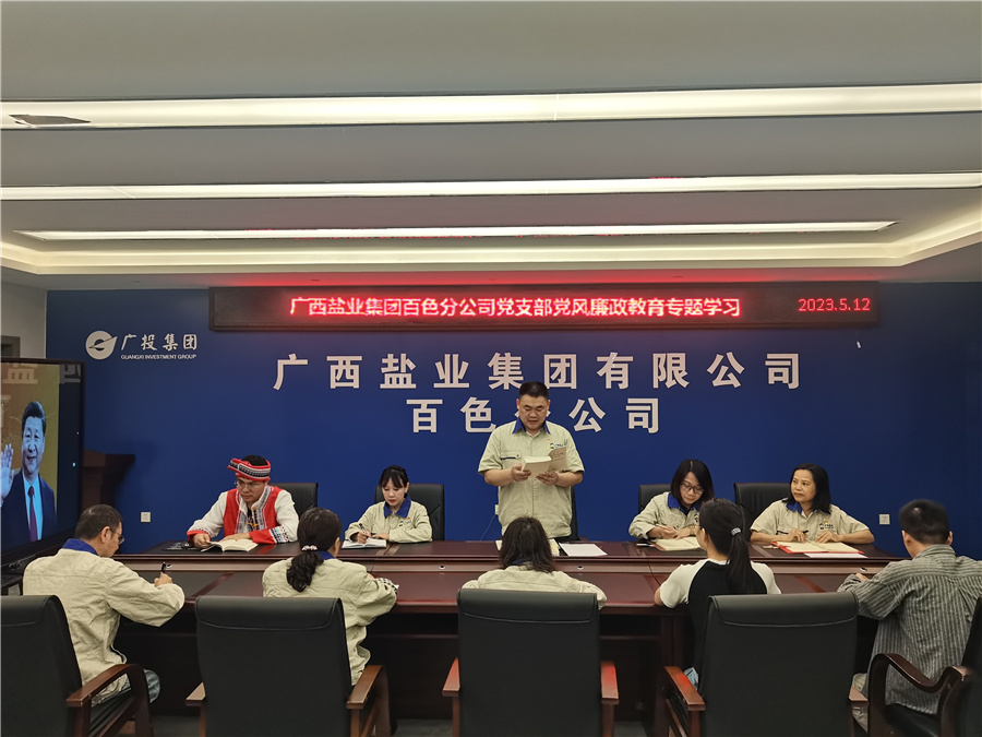 百色分公司黨支部在廣西鹽業(yè)集團(tuán)黨委的堅(jiān)強(qiáng)領(lǐng)導(dǎo)下,始終堅(jiān)持理論學(xué)廉、監(jiān)督護(hù)廉、文化興廉、干部清廉,將黨風(fēng)廉政教育融入學(xué)習(xí)貫徹習(xí)近平新時代中國特色社會主義思想主題教育工作中,與主營主業(yè)重大宣傳活動緊密結(jié)合。