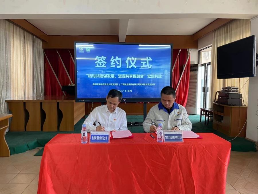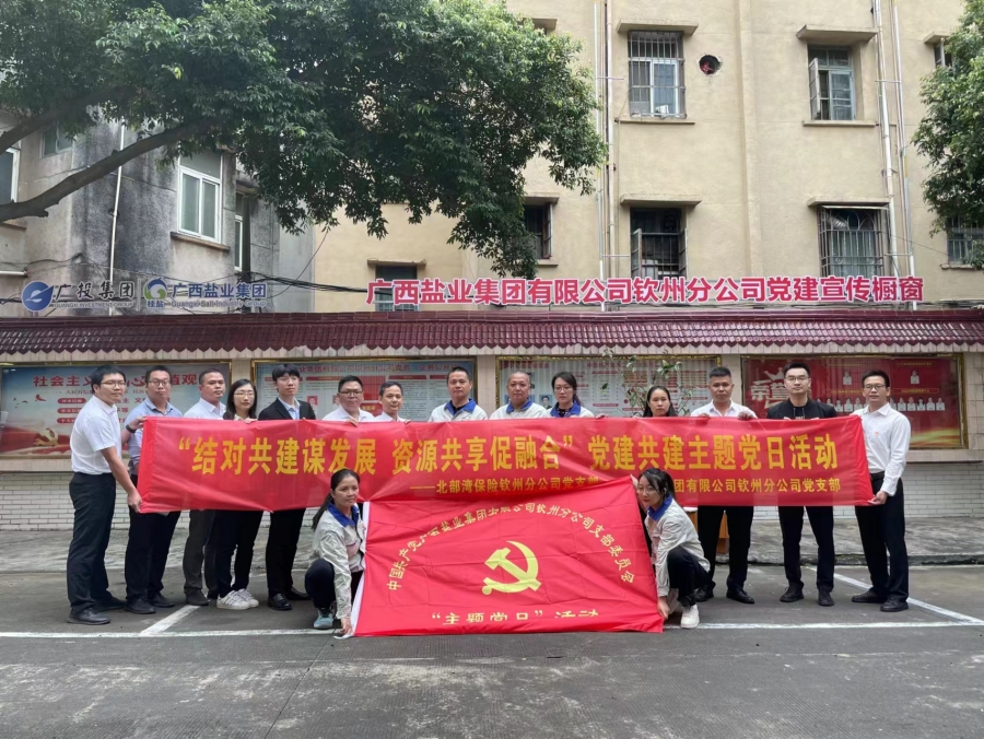 10月20日,欽州分公司黨支部與北部灣保險(xiǎn)欽州分公司黨支部在欽州鹽業(yè)辦公大院共同開(kāi)展“結(jié)對(duì)共建謀發(fā)展,資源共享促融合”黨建共建活動(dòng)。