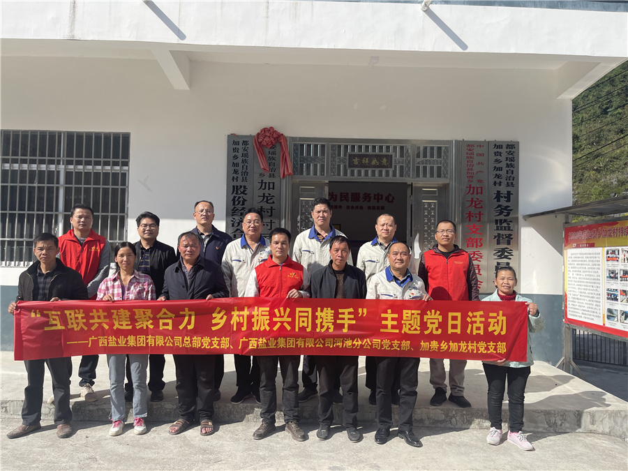 為深入貫徹習(xí)近平總書記關(guān)于鄉(xiāng)村振興的重要論述,加強(qiáng)基層組織建設(shè),助力鄉(xiāng)村振興,11月28日,廣西鹽業(yè)集團(tuán)總部黨支部、河池分公司黨支部深入鹽業(yè)集團(tuán)定點幫扶村都安縣加龍村與村黨支部共同開展“互聯(lián)共建聚合力 鄉(xiāng)村振興同攜手”主題黨日活動。集團(tuán)黨委副書記、副董事長、總經(jīng)理李華生參加活動。