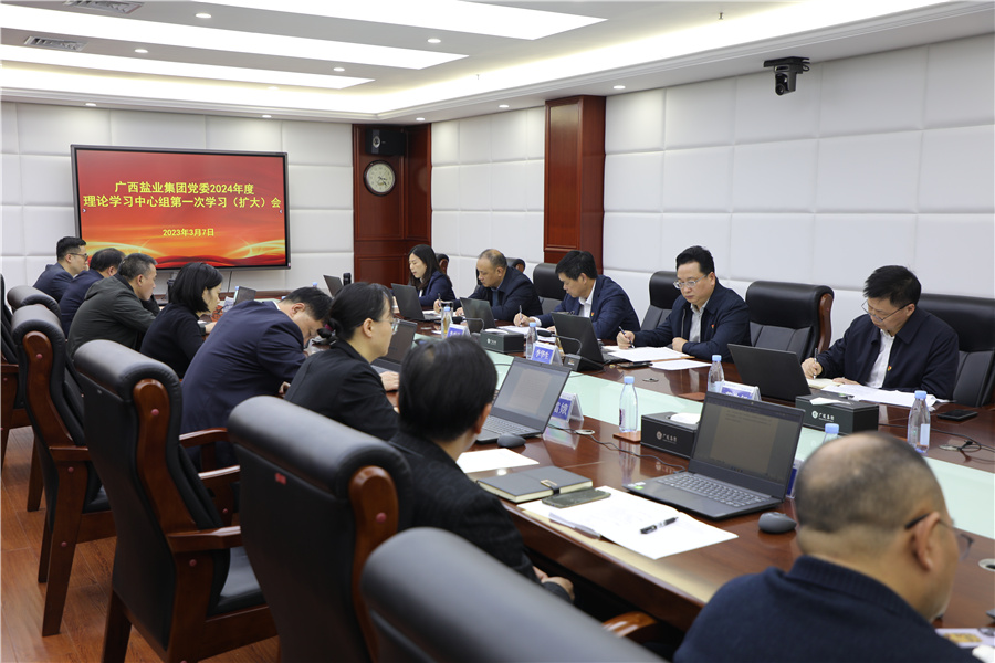2024年3月7日下午,廣西鹽業(yè)集團黨委召開2024年度理論學習中心組第一次學習(擴大)會。廣西鹽業(yè)集團有限公司黨委書記、董事長李奕添主持會議,在家班子成員參加會議。