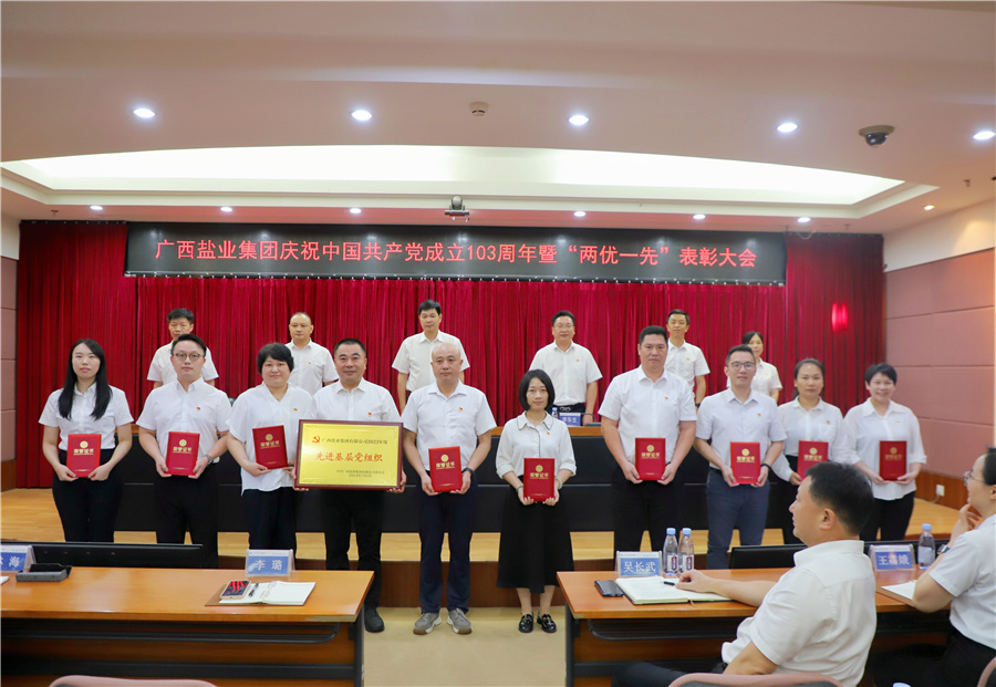 7月1日,廣西鹽業(yè)集團(tuán)黨委召開慶祝中國共產(chǎn)黨成立103周年暨“兩優(yōu)一先”表彰大會,集中表彰2023年度優(yōu)秀共產(chǎn)黨員、優(yōu)秀黨務(wù)工作者、先進(jìn)基層黨組織,集團(tuán)黨委書記、董事長李奕添出席會議,黨委副書記、副董事長、總經(jīng)理李華生宣讀“兩優(yōu)一先”表彰通報(bào),黨委副書記、職工董事、工會主席韋平主持會議。