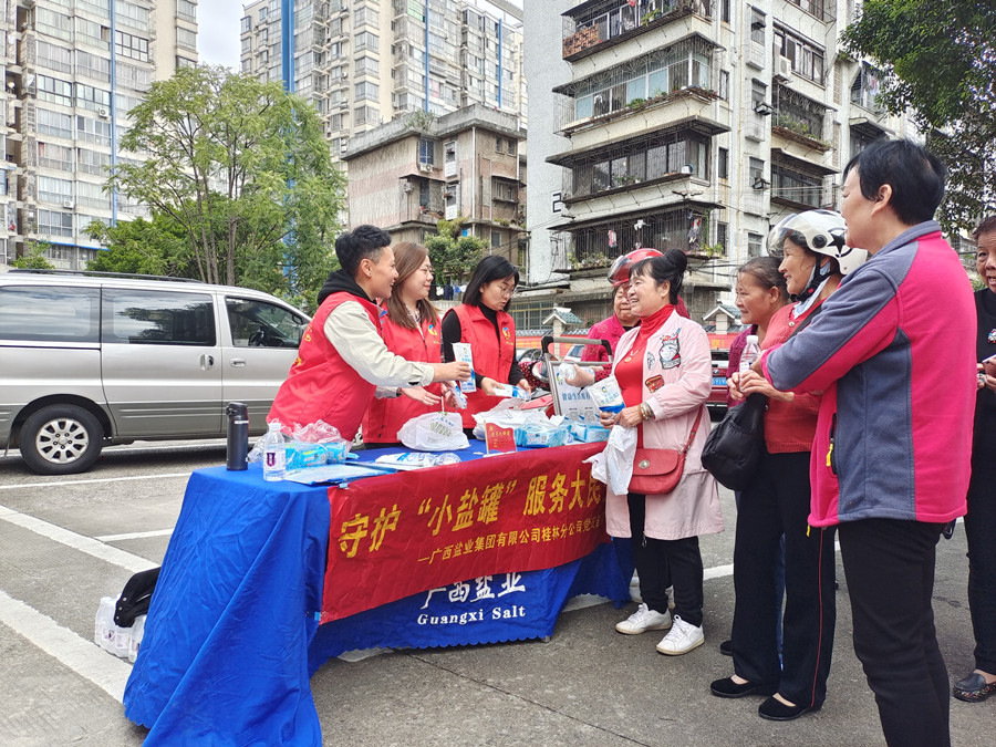 活動中,參與單位還為社區(qū)老人免費測量血壓、血糖,并提供健康指導(dǎo)。桂林分公司黨支部免費發(fā)放了桂鹽系列仫佬山泉水、紙巾、鹽品知識宣傳單等慰問品,現(xiàn)場老人愉悅了身心,更感受到了社會大家庭的溫暖。