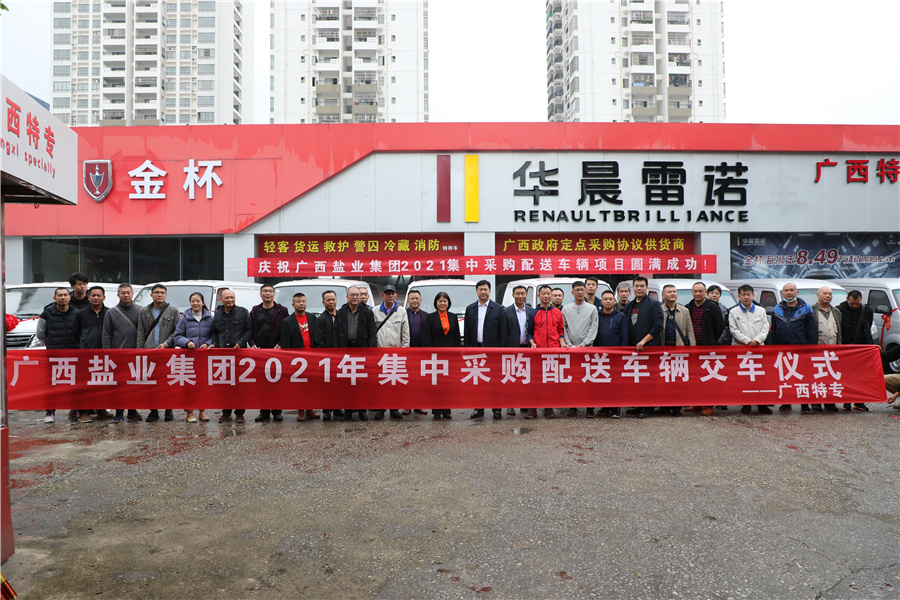 11月17日上午,廣西鹽業(yè)集團(tuán)2021年集中采購配送車輛交車儀式在廣西特專汽車銷售服務(wù)有限公司金杯汽車4S店隆重舉行,鹽業(yè)集團(tuán)副總經(jīng)理莫曉燕出席儀式并致辭。