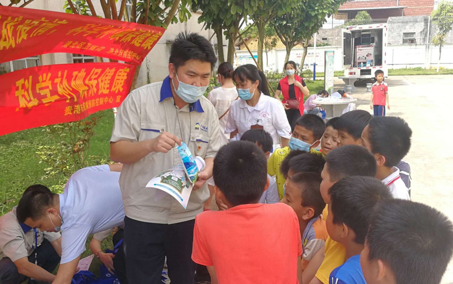 圖為廣西鹽業(yè)集團黨員進校園開展科學(xué)補碘鹽宣傳