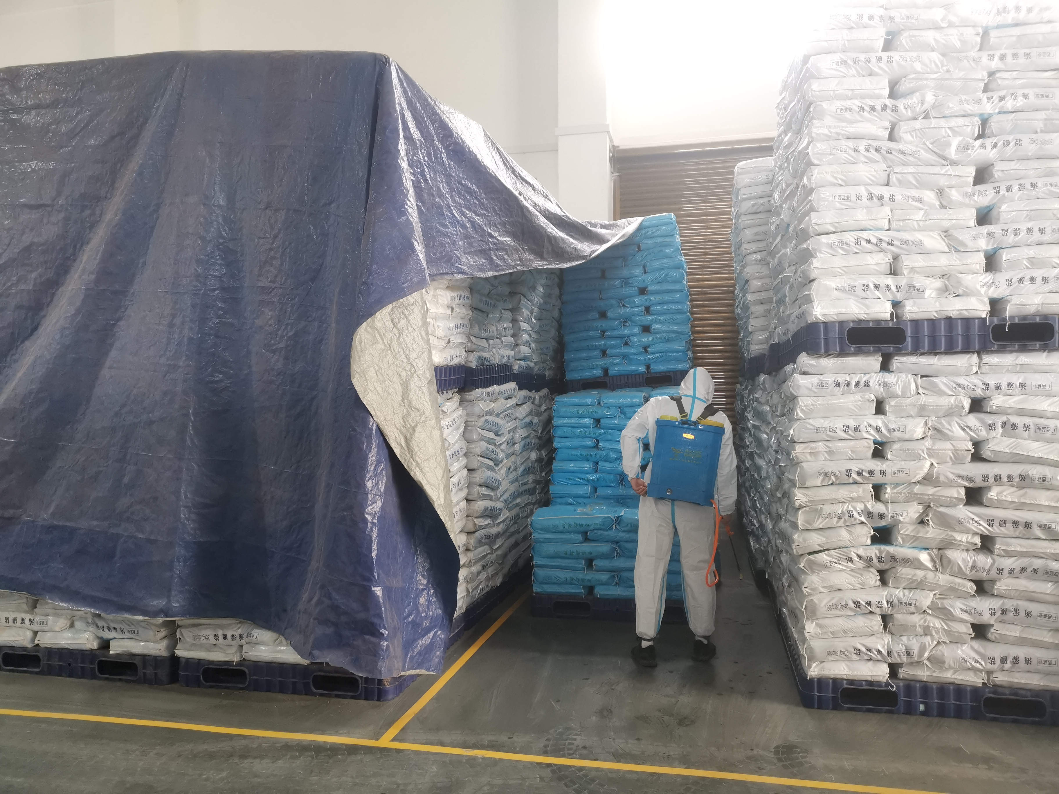 黨員檢查倉儲食鹽
