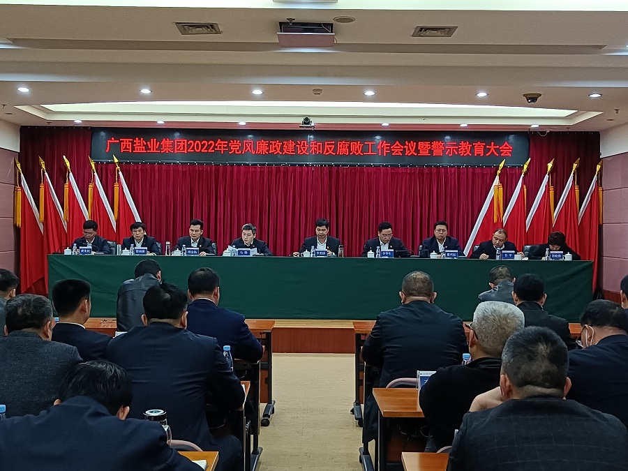 1月27日下午,廣西鹽業(yè)集團(tuán)有限公司在桂鹽大廈四樓召開2022年黨風(fēng)廉政建設(shè)和反腐敗工作會議暨警示教育大會。公司領(lǐng)導(dǎo)班子成員出席會議,黨委副書記、紀(jì)委書記、職工董事、工會主席馬勤在會上作了題為《從黨的百年奮斗中汲取前進(jìn)力量 以堅強(qiáng)有力的監(jiān)督服務(wù)企業(yè)高質(zhì)量發(fā)展》的黨風(fēng)廉政建設(shè)和反腐敗工作報告。