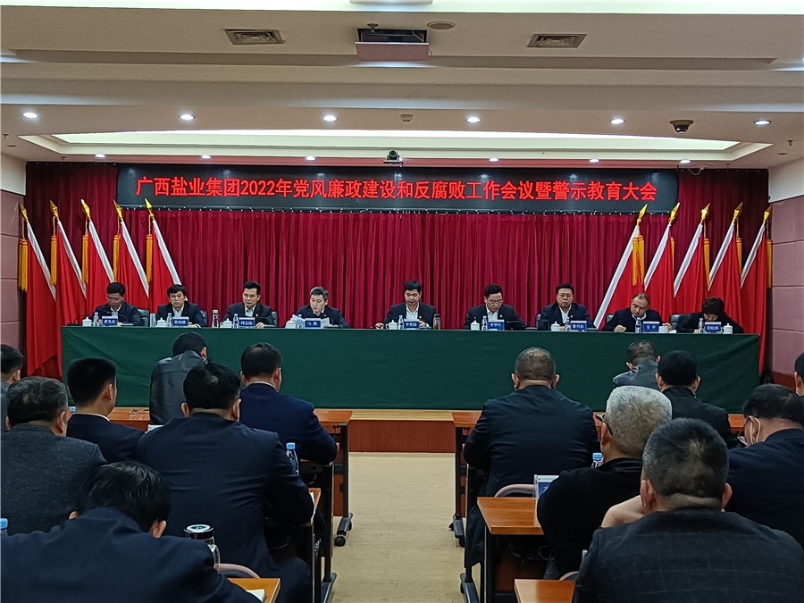 圖為廣西鹽業(yè)集團(tuán)有限公司2022年黨風(fēng)廉政建設(shè)和反腐敗工作會(huì)議暨警示教育大會(huì)現(xiàn)場(chǎng)