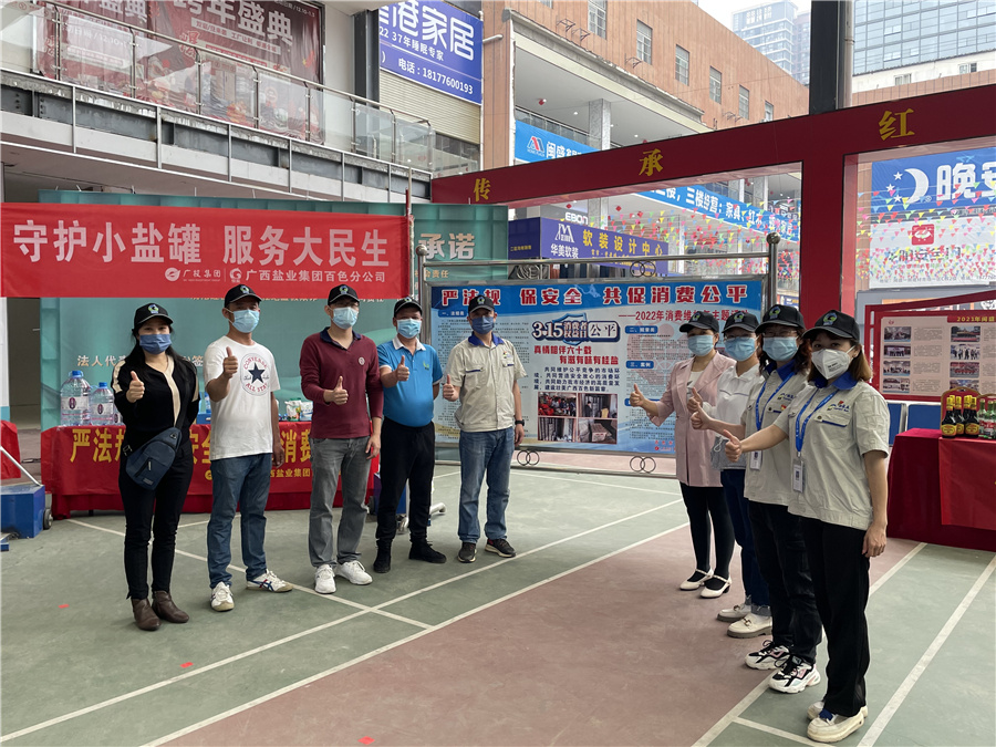 在2022年“3.15國(guó)際消費(fèi)者權(quán)益日”來(lái)臨之際,廣西鹽業(yè)集團(tuán)圍繞“誠(chéng)信桂鹽”宣傳教育活動(dòng),各所屬公司積極配合各地市場(chǎng)監(jiān)督管部門和消費(fèi)者協(xié)會(huì)舉辦以“共促消費(fèi)公平”為主題的線上、線下主題宣傳活動(dòng)。