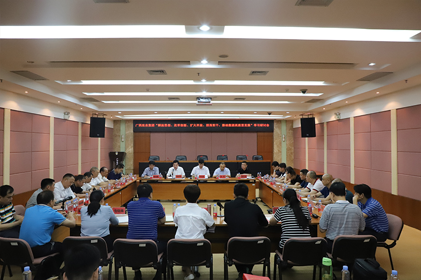 2019年5月13日,廣西鹽業(yè)集團召開“解放思想、改革創(chuàng)新、擴大開放、擔當實干,推動集團高質(zhì)量發(fā)展”學習研討會,集團公司黨組書記、董事長、總經(jīng)理李奕添上主題黨課,黨組成員、董事、副總經(jīng)理韋平主持會議。
