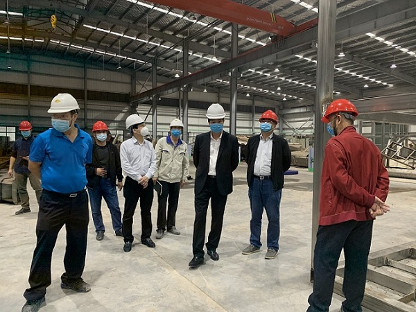 (圖為集團(tuán)領(lǐng)導(dǎo)調(diào)研建設(shè)中的廠房)