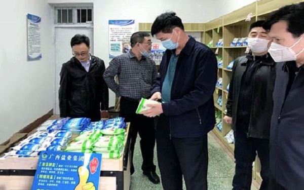 (圖為集團公司領導在全州“桂鹽”品牌形象店視察工作)