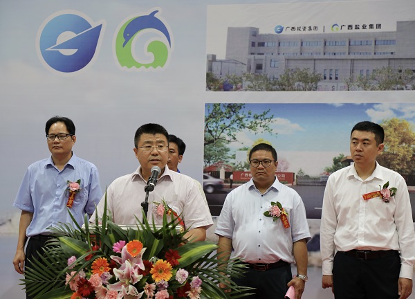 5月18日上午,廣西鹽業(yè)集團(tuán)有限公司欽州保稅港區(qū)綜合加工物流中心項(xiàng)目竣工投產(chǎn)儀式在欽州保稅港區(qū)順利舉行。中國(廣西)自由貿(mào)易試驗(yàn)區(qū)欽州港片區(qū)管理委員會(huì)工委委員、管委會(huì)副主任趙越,廣西投資集團(tuán)黨委委員、副總經(jīng)理?xiàng)疃?,廣西鹽業(yè)集團(tuán)領(lǐng)導(dǎo)出席儀式。