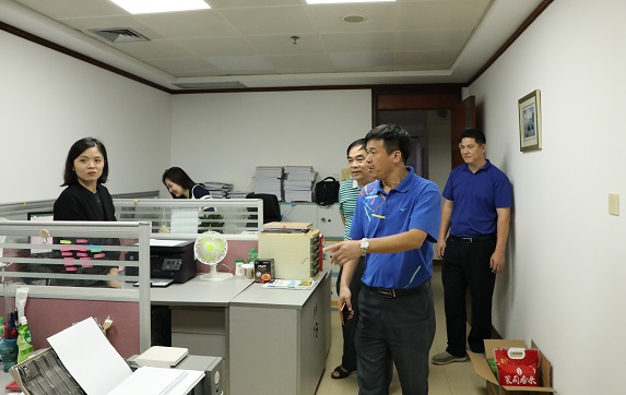 (圖為檢查組在集團(tuán)本部檢查辦公環(huán)境)