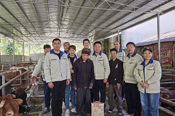 (圖為李華生總經(jīng)理一行深入加龍村村級牛場調(diào)研)