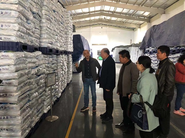 (圖為調(diào)研組考察百色分公司鹽品倉庫)