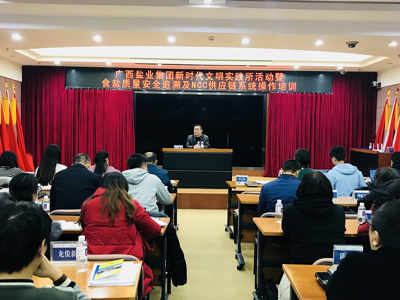 根據(jù)《食鹽專營(yíng)辦法》及工業(yè)和信息化部2018年第19號(hào)公告《食鹽定點(diǎn)生產(chǎn)企業(yè)和食鹽定點(diǎn)批發(fā)企業(yè)規(guī)范條件》和《食鹽定點(diǎn)生產(chǎn)企業(yè)和食鹽定點(diǎn)批發(fā)企業(yè)規(guī)范條件管理辦法》要求,集團(tuán)公司開發(fā)完成了食鹽質(zhì)量安全追溯系統(tǒng)并將全面投入使用。為保證追溯系統(tǒng)順利上線,更好地對(duì)接NCC供應(yīng)鏈系統(tǒng),集團(tuán)公司于2020年12月14日-16日在集團(tuán)本部舉辦了《食鹽質(zhì)量安全追溯系統(tǒng)及NCC供應(yīng)鏈系統(tǒng)操作》培訓(xùn)班。集團(tuán)本部相關(guān)部室,各分、支公司,柳州、玉林鹽業(yè)公司、銀鵬品種鹽公司、同鑫科技公司共計(jì)60余人參加了培訓(xùn)。
