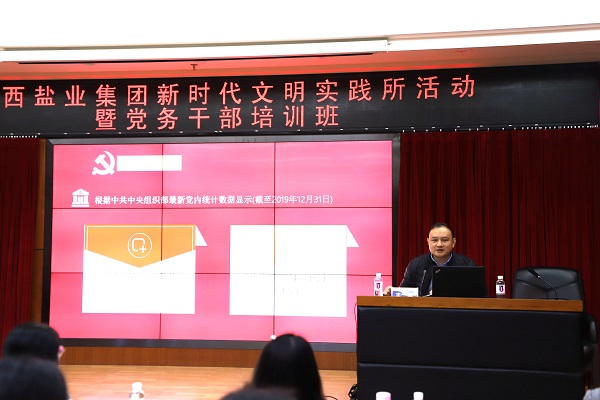 為進(jìn)一步加強(qiáng)集團(tuán)基層黨組織建設(shè),提升黨務(wù)干部的業(yè)務(wù)能力和綜合素質(zhì)。12月23 -24日,集團(tuán)在桂鹽大廈3號會議室舉辦了2020年黨務(wù)干部培訓(xùn)班,集團(tuán)各二級黨組織支部書記和黨務(wù)干部共計(jì)22人參加。培訓(xùn)班由集團(tuán)黨組副書記馬勤主持。