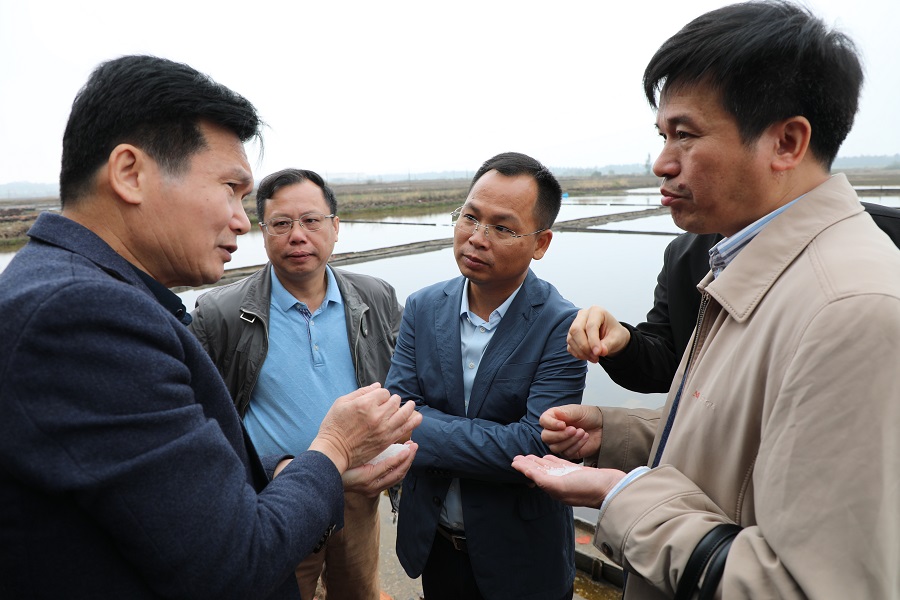 座談會(huì)前,李奕添一行來(lái)到欽州開投集團(tuán)所屬企業(yè)欽州犀牛腳鹽場(chǎng)進(jìn)行深入考察,對(duì)鹽場(chǎng)生產(chǎn)經(jīng)營(yíng)及海鹽生產(chǎn)工藝流程等情況進(jìn)行詳細(xì)了解。在座談會(huì)上,李奕添介紹了廣西鹽業(yè)集團(tuán)相關(guān)情況,作為區(qū)內(nèi)唯一具備省級(jí)食鹽定點(diǎn)批發(fā)和食鹽定點(diǎn)生產(chǎn)資質(zhì)的省級(jí)鹽業(yè)企業(yè),在加入廣投集團(tuán)后,鹽業(yè)集團(tuán)不斷創(chuàng)新經(jīng)營(yíng)模式,取得了積極成效。他提出,為扎實(shí)推動(dòng)“十四五”開好局、起好步,鹽業(yè)集團(tuán)將繼續(xù)圍繞“立足鹽業(yè)固本,跳出鹽業(yè)壯大”的發(fā)展思路,積極探索發(fā)展補(bǔ)鏈延鏈項(xiàng)目,愿意與各方共同攜手,打造集團(tuán)高質(zhì)量發(fā)展新優(yōu)勢(shì)。