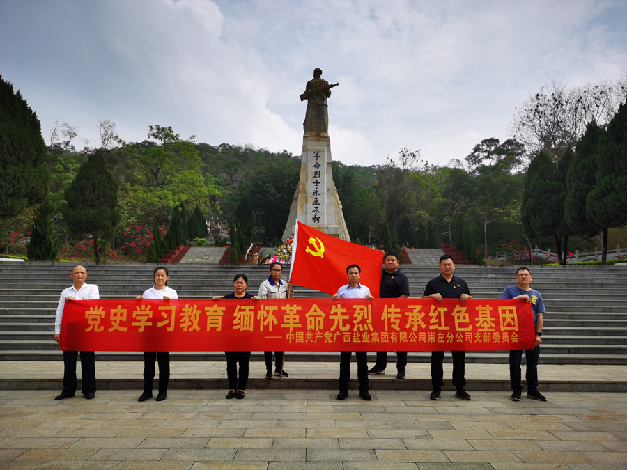 4月7日,廣西鹽業(yè)集團(tuán)有限公司崇左分公司黨支部一行8人在支部書記曾劍鋒同志的帶領(lǐng)下到崇左市烈士陵園開展文明祭祀活動(dòng)。在建黨100周年和清明節(jié)到來之際,為革命先烈敬獻(xiàn)花圈、菊花、祭掃英烈、致敬英烈,用文明、安全、環(huán)保的祭拜方式來禮敬先人、緬懷先烈、寄托哀思、樹立文明祭掃新風(fēng)。