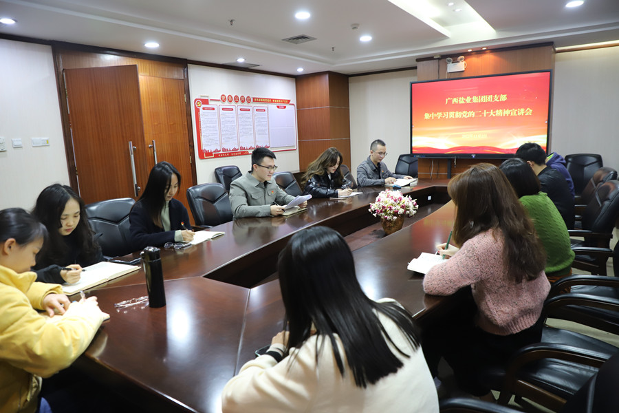 12月2日下午,廣西鹽業(yè)集團(tuán)團(tuán)支部組織召開學(xué)習(xí)貫徹黨的二十大精神宣講會(huì),廣西鹽業(yè)集團(tuán)本部共青團(tuán)員、青年職工代表參加會(huì)議。