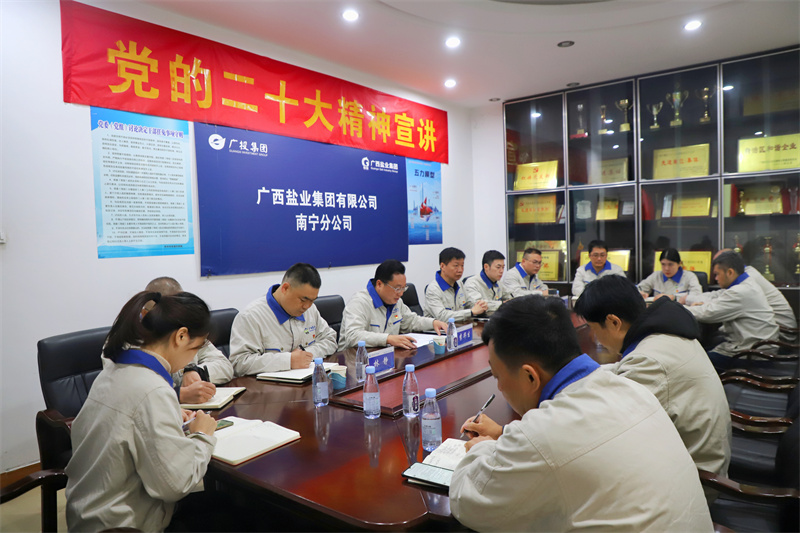 在宣講會上,李華生結合自身的學習心得和公司發(fā)展實際,用通俗易懂的語言,帶領南寧分公司、梧州分公司黨支部黨員一起學習了黨的二十大提出的新觀點、新思想、新戰(zhàn)略。他提出,集團公司上下要始終胸懷“國之大者”、勇?lián)鷩笫姑?,忠實履行食鹽專營企業(yè)的社會責任。