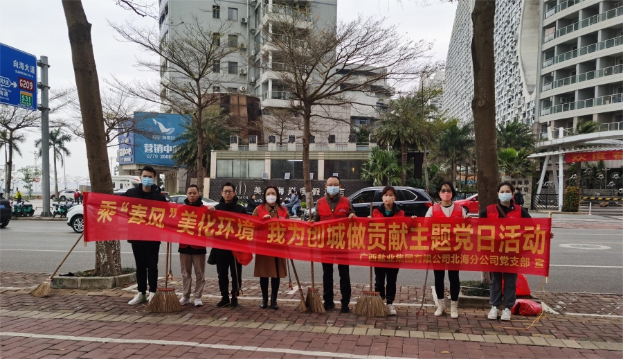 為豐富主題黨日活動內容,增添黨建工作活力,2月15日下午,由鹽業(yè)集團北海分公司黨支部黨員和入黨積極分子組成的志愿服務隊,到上海路段衛(wèi)生責任區(qū)開展“乘春風美化環(huán)境 我為創(chuàng)城做貢獻”主題黨日活動。