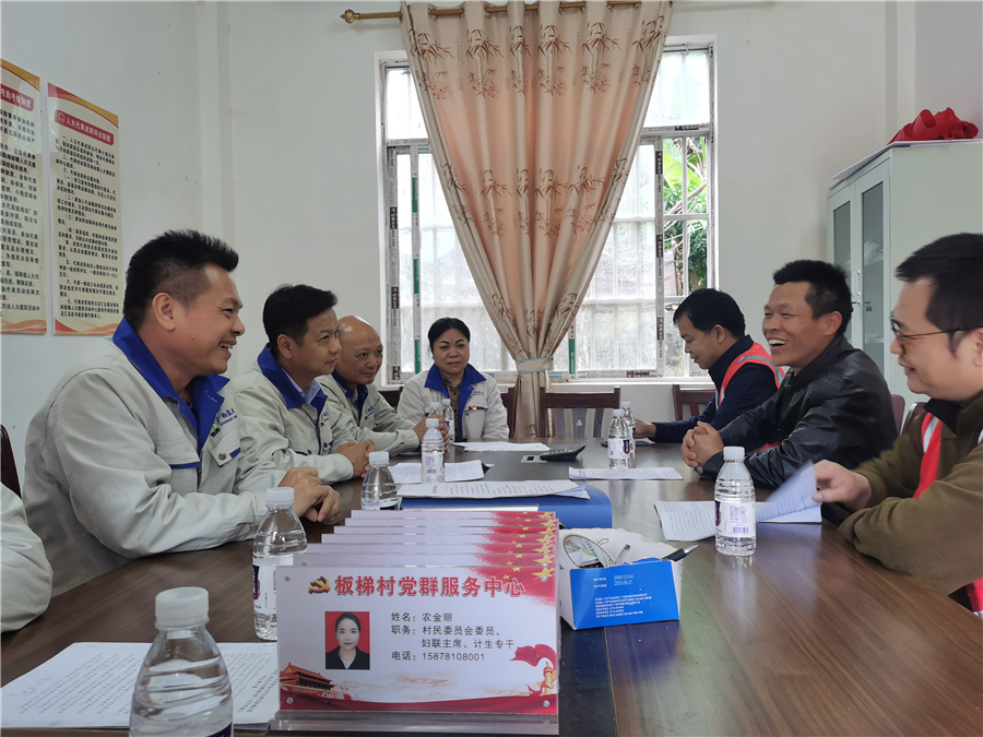座談會上,板梯村黨支部農(nóng)書記介紹了板梯村的基本情況、開展鄉(xiāng)村振興的主要舉措,以及近年來在各級政府和幫扶單位的支持幫助下,板梯村通過種蔗收入、入股光伏發(fā)電產(chǎn)業(yè)、甘牛養(yǎng)殖產(chǎn)業(yè)和政府資金扶持等不斷擴(kuò)大收入來源,發(fā)展鄉(xiāng)村振興事業(yè)的成效。崇左分公司黨支部書記曾劍鋒表示,要大力支持結(jié)對幫扶村,勉勵駐村黨員,要用心用情配合當(dāng)?shù)卮逦_展各項鄉(xiāng)村振興工作,不負(fù)重托,為當(dāng)?shù)剜l(xiāng)村振興作出積極貢獻(xiàn),交出一份滿意答卷。