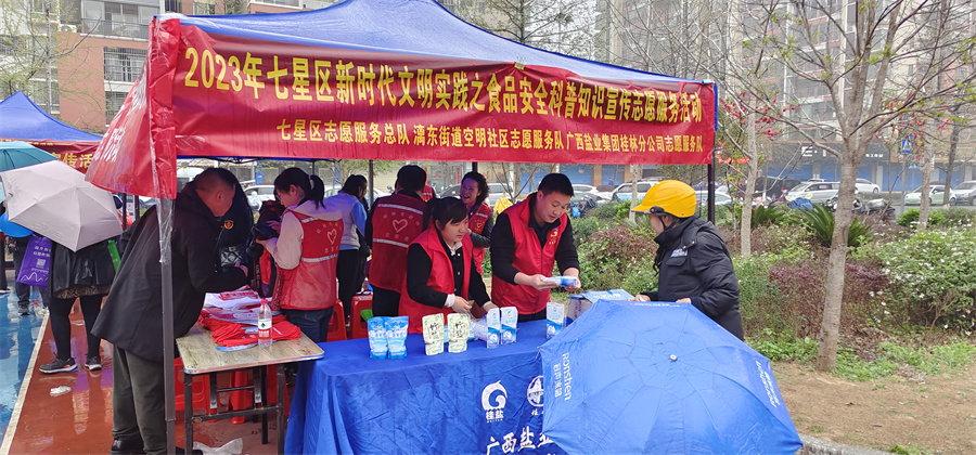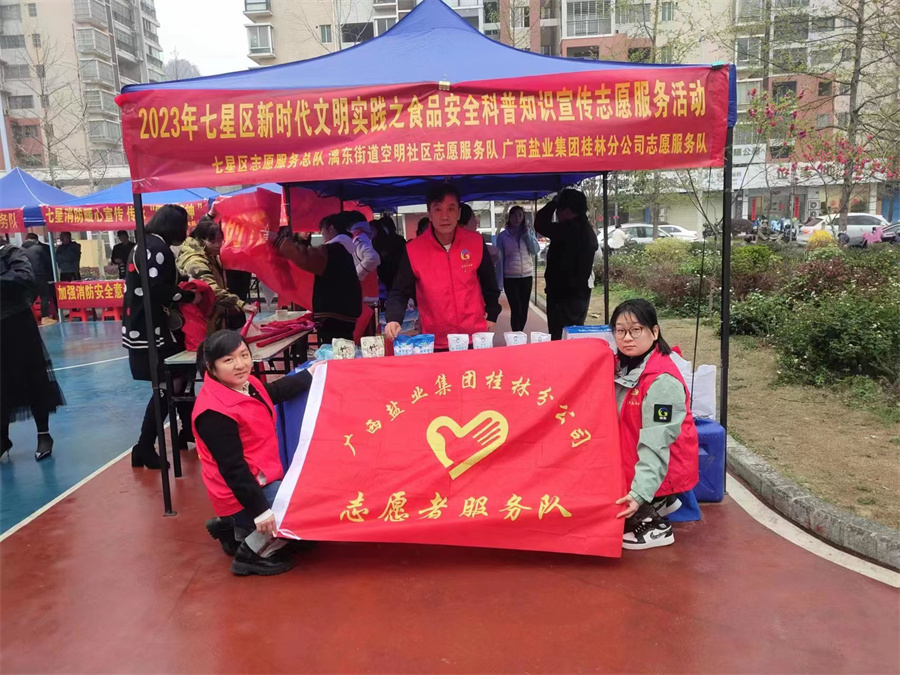 在“3.15”消費(fèi)者權(quán)益日即將到來之際,為提高消費(fèi)者對(duì)食品安全的防范意識(shí)和自我保護(hù),近日,廣西鹽業(yè)集團(tuán)桂林分公司志愿服務(wù)隊(duì)聯(lián)合桂林市七星區(qū)志愿服務(wù)總隊(duì)、漓東街道空明社區(qū)志愿服務(wù)隊(duì)在桂林市七星區(qū)空明社區(qū)開展食品安全科普知識(shí)宣傳志愿服務(wù)活動(dòng)。