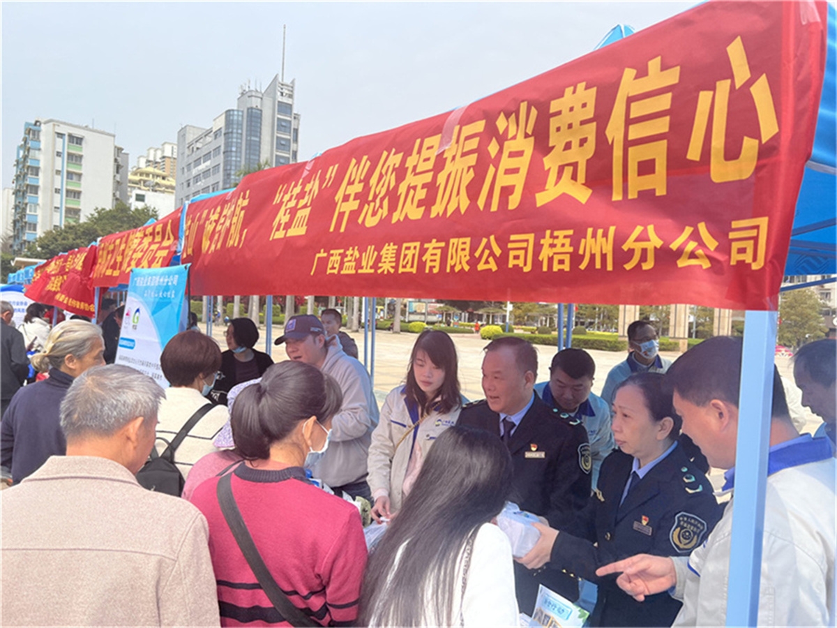3月13日,梧州分公司受梧州市市場(chǎng)監(jiān)督局邀請(qǐng),參加了梧州市2023年紀(jì)念“3·15”國(guó)際消費(fèi)者權(quán)益日,“提振消費(fèi)信心”主題活動(dòng),梧州分公司以《“桂山”誠(chéng)信護(hù)航,“桂鹽”伴您提振消費(fèi)信心》為主題開(kāi)展宣傳活動(dòng)。