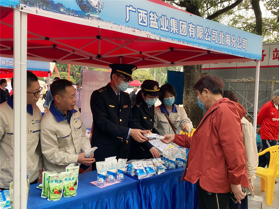 為廣泛宣傳“提振消費信心”消費維權(quán)年主題,引導(dǎo)消費者樹立科學、理性的消費觀念,共同營造安全、和諧健康的消費環(huán)境,2023年3月15日上午,北海市消費者協(xié)會聯(lián)合各單位在北部灣廣場舉辦了2023年紀念“3·15”國際消費者權(quán)益日宣傳活動暨“誠信經(jīng)營、放心消費”創(chuàng)建主題實踐活動。本次參與活動的企業(yè)共27家,均是誠信經(jīng)營、給消費者信心、讓消費者放心的、無不良經(jīng)營行為的企業(yè),廣西鹽業(yè)集團北海分公司作為誠信國企應(yīng)邀參加了本次活動。