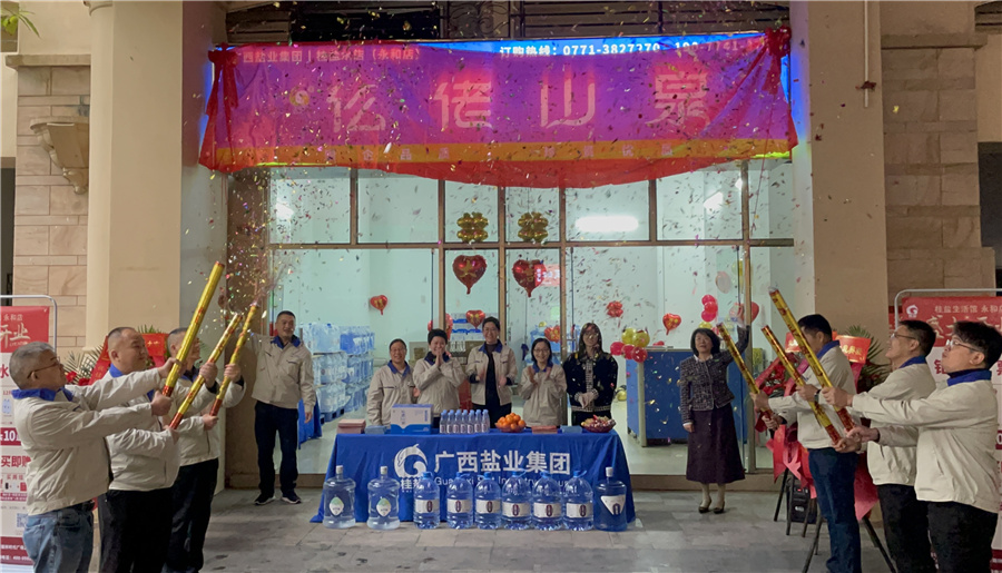 門迎吉日財源廣,店納春風喜慶多!3月29日上午,廣西北部灣鹽業(yè)科技有限責任公司旗下桂鹽生活館永和店盛大開業(yè)。集團副總經(jīng)理莫曉燕出席開業(yè)活動,并為永和店開業(yè)揭牌。