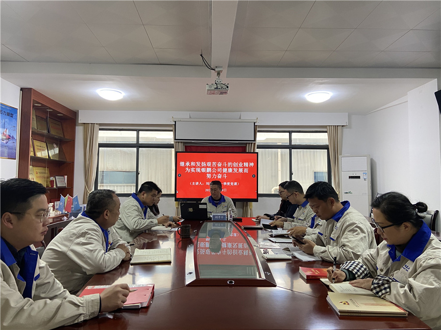 劉孝平先后從“黨的七大的歷史意義”“延安精神”“黨的光榮傳統(tǒng)和優(yōu)良作風(fēng)”“黨的根本宗旨”等數(shù)個(gè)方面回顧了黨史發(fā)展歷程的多個(gè)瞬間,并結(jié)合銀鵬公司現(xiàn)階段生產(chǎn)經(jīng)營管理狀況,提出三點(diǎn)要求:一是堅(jiān)持以習(xí)近平新時(shí)代中國特色社會(huì)主義思想為指導(dǎo),深入貫徹“黨的二十大精神”,領(lǐng)會(huì)落實(shí)習(xí)近平總書記視察廣西“4·27”重要講話精神和對廣西工作系列重要指示及要求;二是在廣投集團(tuán)和鹽業(yè)集團(tuán)黨委的正確領(lǐng)導(dǎo)下,緊緊圍繞生產(chǎn)經(jīng)營中心工作,踔厲奮發(fā)、努力奮斗,確保高質(zhì)量完成公司全年經(jīng)營目標(biāo)任務(wù);三是希望廣大黨員領(lǐng)導(dǎo)干部要保持和發(fā)揚(yáng)艱苦奮斗的創(chuàng)業(yè)精神,充分發(fā)揮黨員的先鋒模范帶頭作用,過緊日子,團(tuán)結(jié)拼博、攻艱克難,將銀鵬公司各項(xiàng)工作推上一個(gè)新的臺(tái)階。