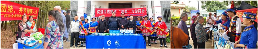 廣西鹽業(yè)集團(tuán)柳州鹽業(yè)有限公司開展“增進(jìn)民族團(tuán)結(jié),共享健康人生”主題宣傳地推活動(dòng),廣西鹽業(yè)集團(tuán)崇左分公司開展“促進(jìn)民族大團(tuán)結(jié) 守護(hù)鄉(xiāng)村小鹽罐”主題黨日活動(dòng),廣西鹽業(yè)集團(tuán)賀州分公司組織黨員營(yíng)銷先鋒隊(duì)赴富川瑤族自治縣葛坡鎮(zhèn)上洞村開展“促進(jìn)民族團(tuán)結(jié) 桂鹽與你同行”民族團(tuán)結(jié)主題黨日活動(dòng)。各企業(yè)利用各地“壯族三月三”慶典活動(dòng)契機(jī),深入村屯設(shè)點(diǎn)擺攤,開展鹽業(yè)法律法規(guī)、真假食鹽辨識(shí)、科學(xué)安全用鹽知識(shí)宣傳,通過(guò)現(xiàn)場(chǎng)講解、分發(fā)傳單等方式,大力倡導(dǎo)“少吃鹽、吃好鹽”的科學(xué)用鹽理念,推廣展示低鈉鹽、海藻碘鹽、生態(tài)海鹽、自然晶鹽等系列高品質(zhì)食鹽,幫助各族群眾養(yǎng)成食鹽多樣化和健康化的習(xí)慣。