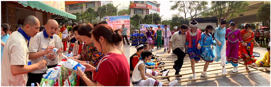 廣西鹽業(yè)集團(tuán)南寧分公司參加西鄉(xiāng)塘區(qū)華強(qiáng)社區(qū)壯族三月三“民族團(tuán)結(jié)一家親”暨民族團(tuán)結(jié)示范創(chuàng)建宣傳月系列活動(dòng),深入宣傳普及鹽業(yè)法律法規(guī)及科學(xué)用鹽知識(shí),展示“桂鹽”品牌綠色安全食鹽?,F(xiàn)場(chǎng)設(shè)計(jì)“鹽”之有禮趣味問(wèn)答環(huán)節(jié),與居民群眾熱情互動(dòng),讓科學(xué)安全用鹽理念深入人心。各族群眾同跳竹竿舞、走三人板鞋、背竹簍拋繡球,共敘鄰里情誼,生動(dòng)展現(xiàn)民族團(tuán)結(jié)一家親的深厚感情。