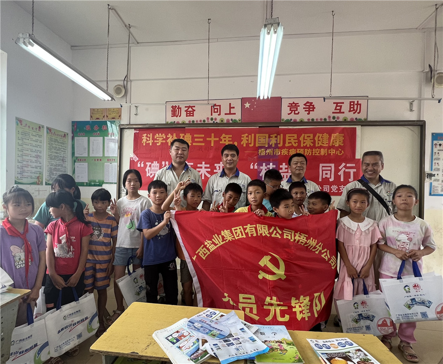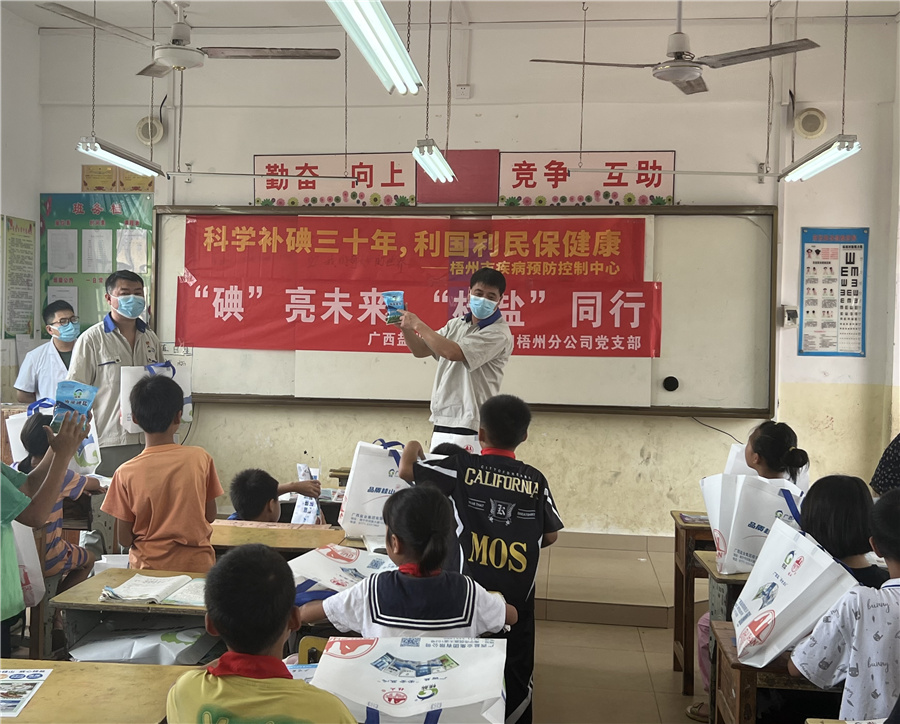 六一國(guó)際兒童節(jié)來(lái)臨之際,為切實(shí)加強(qiáng)青少年健康教育,共同守護(hù)青少年健康成長(zhǎng), 5月22日至23日,梧州分公司聯(lián)合梧州市疾病預(yù)防控制中心,先后來(lái)到蒼梧梨埠鎮(zhèn)鳳儀小學(xué)和石橋鎮(zhèn)學(xué)田小學(xué),開展科學(xué)補(bǔ)碘進(jìn)校園活動(dòng) 。