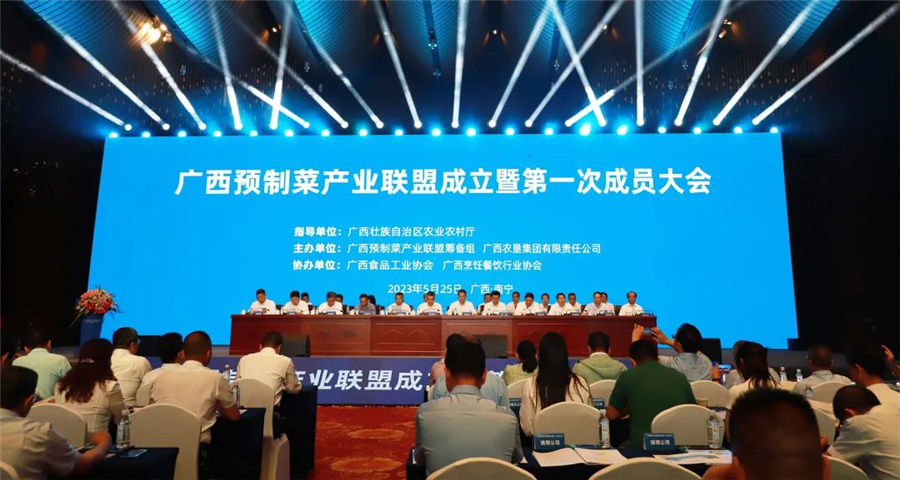 5月25日,由自治區(qū)農(nóng)業(yè)農(nóng)村廳指導(dǎo),廣西預(yù)制菜產(chǎn)業(yè)聯(lián)盟籌備組主辦的廣西預(yù)制菜產(chǎn)業(yè)聯(lián)盟成立暨第一次成員大會(huì)在南寧召開(kāi)。自治區(qū)人民政府有關(guān)領(lǐng)導(dǎo)、自治區(qū)農(nóng)業(yè)農(nóng)村廳等相關(guān)廳局領(lǐng)導(dǎo)和168家預(yù)制菜行業(yè)企業(yè)、協(xié)會(huì)等負(fù)責(zé)人出席大會(huì)。鹽業(yè)集團(tuán)黨委副書(shū)記、副董事長(zhǎng)、總經(jīng)理李華生作為成員單位代表參加大會(huì)。