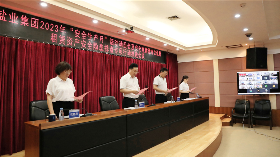 今年6月是第22個全國“安全生產(chǎn)月”,6月5日,鹽業(yè)集團召開2023年“安全生產(chǎn)月”活動動員會及安全宣講教育會議暨租賃資產(chǎn)安全隱患排查專項行動推進會議,集團總經(jīng)理、安委會主任李華生作安全生產(chǎn)宣講,副總經(jīng)理、安委會常務副主任于德昕主持會議。