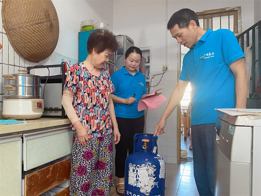 行動(dòng)中,北海分公司安全管理人員通過微信群轉(zhuǎn)發(fā)消防安全資料對(duì)職工及家屬進(jìn)行宣傳教育,并對(duì)出租房和公司宿舍樓燃?xì)?/span>使用情況進(jìn)行全面排查,重點(diǎn)檢查燃?xì)馄渴欠褚?guī)范存放、燃?xì)馄渴欠襁^期、燃?xì)廛浌苁欠窭匣入[患,對(duì)發(fā)現(xiàn)的隱患,督促租戶立即整改,及時(shí)消除隱患,同時(shí)對(duì)樓道干粉滅火器數(shù)量、擺放位置、有效期等進(jìn)行跟進(jìn)檢查。在排查和整治的同時(shí),管理人員還派發(fā)《消防安全告知書》,加強(qiáng)正確使用燃?xì)?/span>瓶和安全用氣知識(shí)宣傳,提高租戶安全意識(shí)。