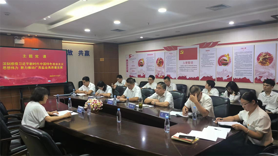 為進(jìn)一步推動習(xí)近平新時代中國特色社會主義思想主題教育走深走實,確保主題教育取得實實在在的成效,7月5日,集團(tuán)公司副總經(jīng)理莫曉燕為北部灣公司黨支部上了一堂題為《深刻感悟習(xí)近平新時代中國特色社會主義思想偉力,努力推動廣西鹽業(yè)高質(zhì)量發(fā)展》的主題黨課。