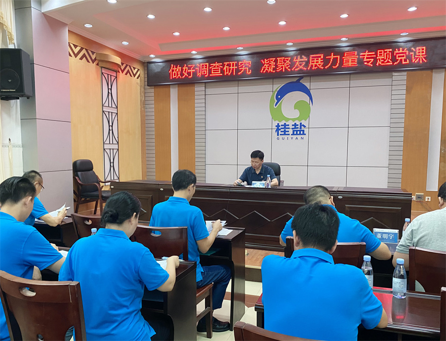黨課上,黃先紅從理解調查研究的含義、如何開展調查研究和指導實踐推動工作等方面,引導大家充分認識調查研究的重要性,深入學習領會習近平總書記關于調查研究的重要論述。黃先紅指出,要緊緊圍繞習近平總書記重要論述找方向、找思路、找辦法,夯實學習內容、創(chuàng)新形式載體,強化結合融合。必須堅持問題導向,用好調查研究傳家寶,善于運用習近平新時代中國特色社會主義思想認識和分析當前鹽業(yè)發(fā)展面臨的形勢,堅持問題導向和目標導向相結合,以具體目標為牽引,以解決問題為抓手,以更加務實的政策舉措推動工作躍升。