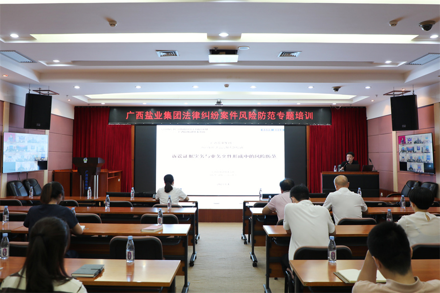 為提高法律風(fēng)險(xiǎn)防范意識(shí),加強(qiáng)對(duì)法律糾紛案件的管理,持續(xù)推進(jìn)“法治桂鹽”建設(shè),2023年8月4日下午,廣西鹽業(yè)集團(tuán)舉辦“訴訟證據(jù)實(shí)務(wù)與業(yè)務(wù)文件形成中的風(fēng)險(xiǎn)防范”專題培訓(xùn)。本次培訓(xùn)以現(xiàn)場(chǎng)與視頻相結(jié)合的方式進(jìn)行,集團(tuán)副總經(jīng)理、總法律顧問于德昕,集團(tuán)投資發(fā)展部、財(cái)務(wù)部、審計(jì)法務(wù)部全體人員、各部門合規(guī)管理員,以及各企業(yè)主要負(fù)責(zé)人、分管法務(wù)合規(guī)工作的公司領(lǐng)導(dǎo)、合規(guī)管理員等60余人參加了培訓(xùn)。